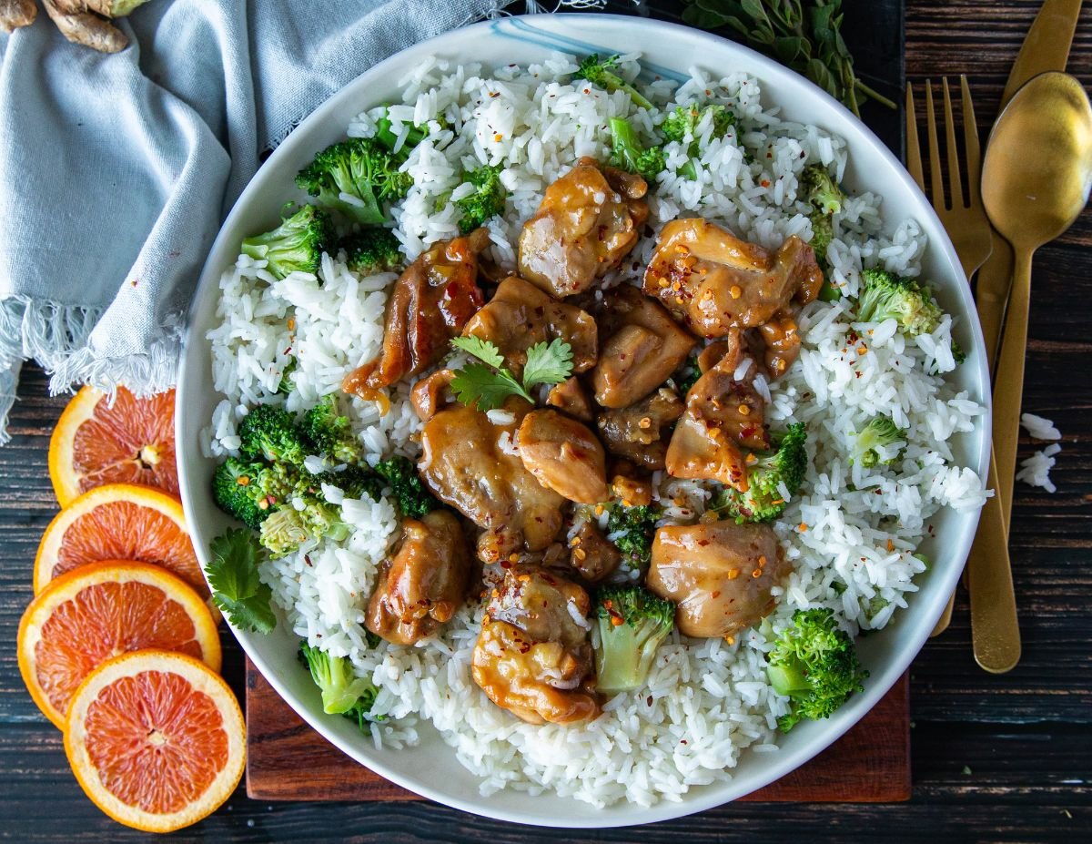 - Orange Chicken with Broccoli & Jasmine Rice