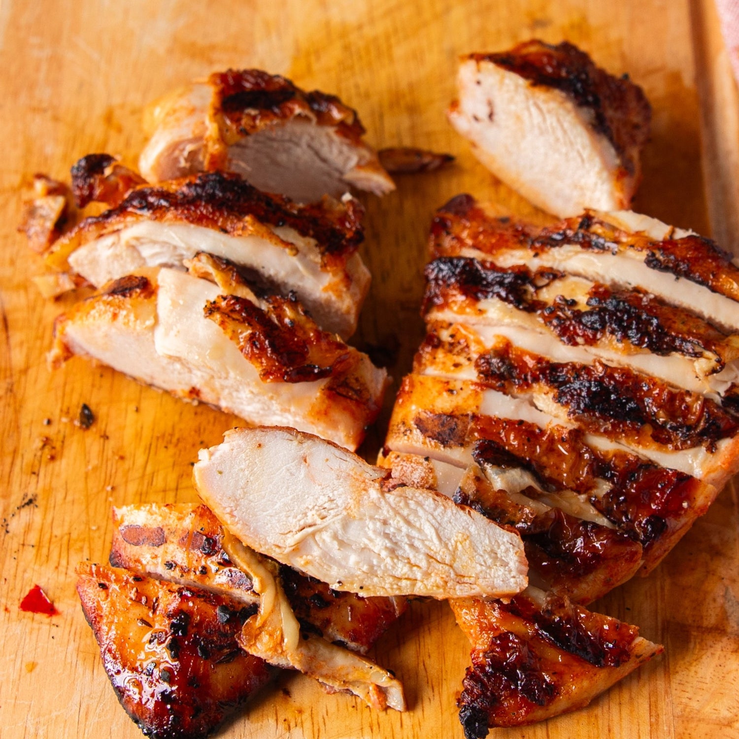 INGREDIENTS: Chicken Breast, Salt, Spice, Sugars (Dextrose, Sugar), Dehydrated onion, Dehydrated garlic, Modified corn starch, Disodium inosinate & guanylate, Paprika extract, Spice extract, Caramel colour, Calcium silicate (mfg aid). Allergens: Wheat Flour.
